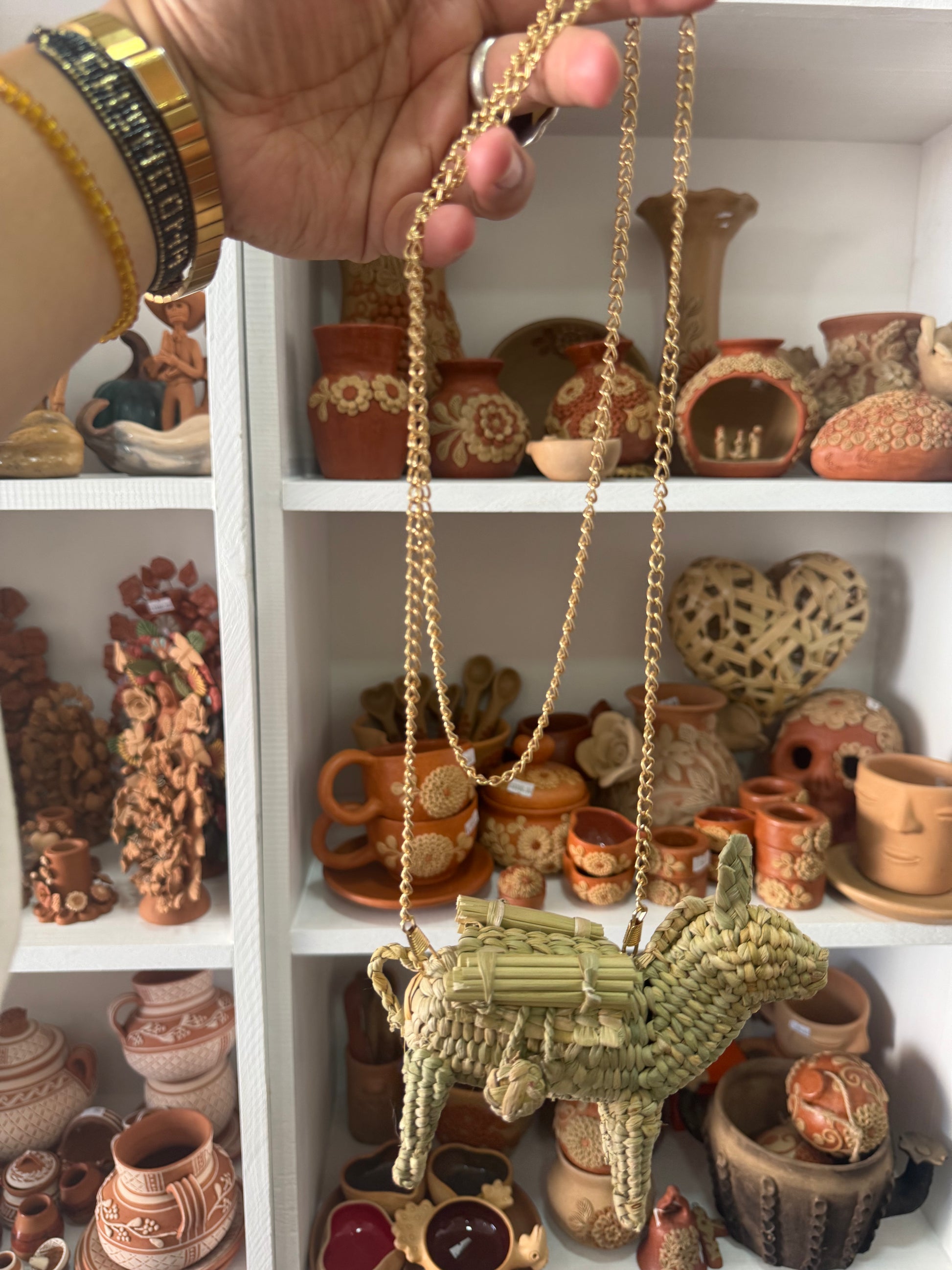 Bolsa monedero de burrito de chuspata elaborado por artesanos de Ihuatzio, Michoacán.