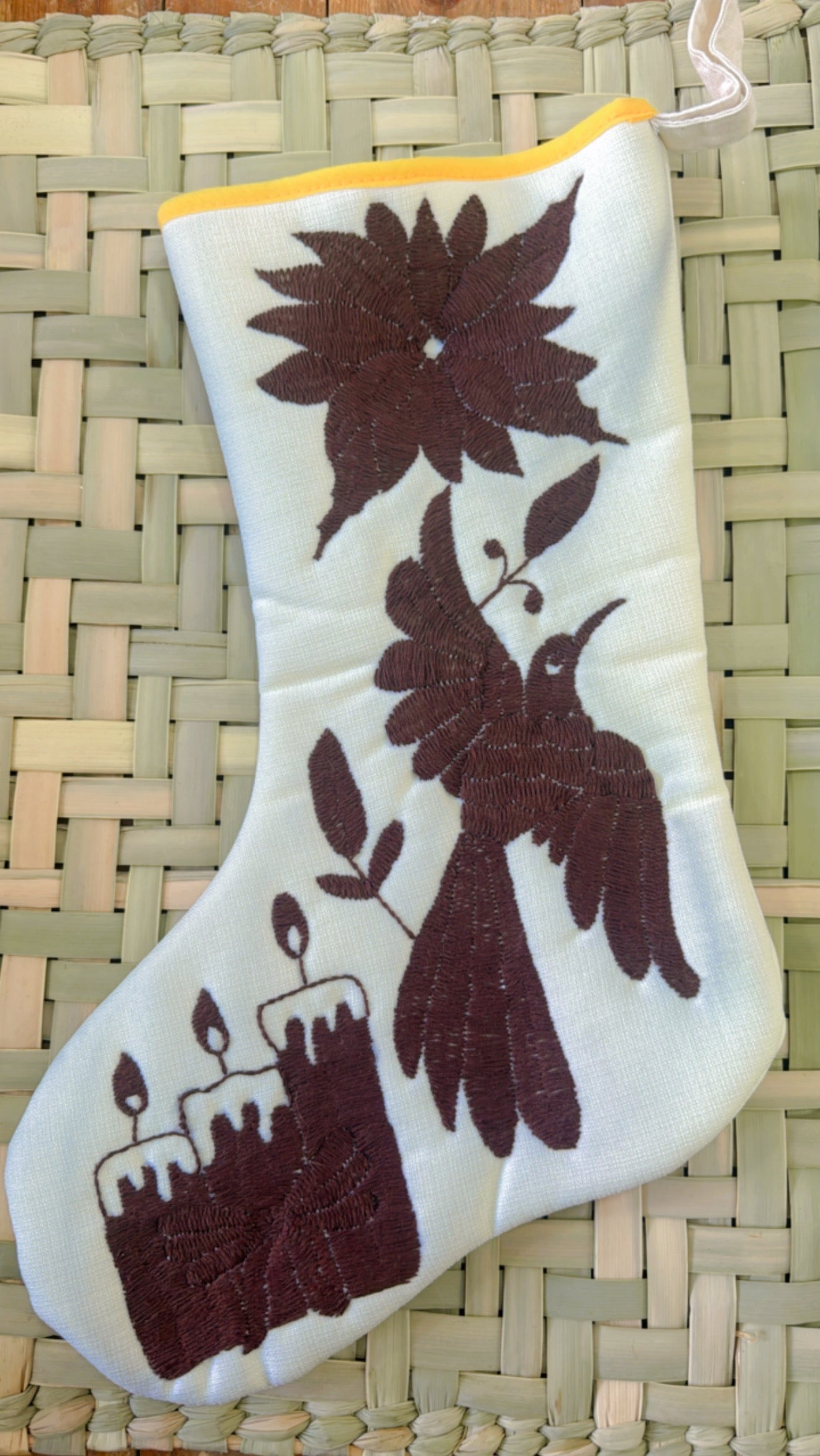 Bota de 32 cms de alto bordado a mano por artesanos de Hidalgo
