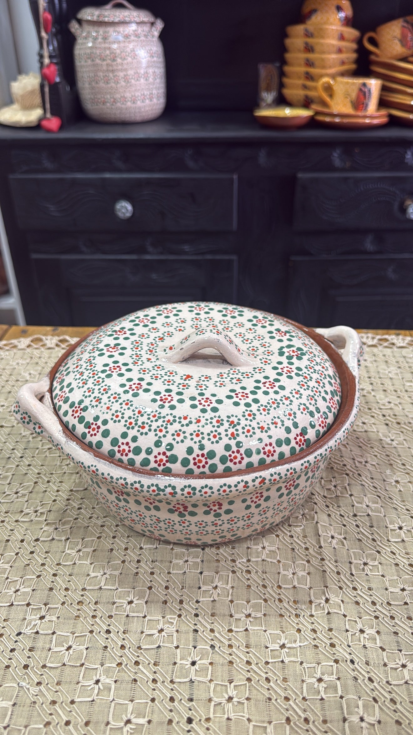 Cazuela de barro pintada a mano, con capacidad de 1.2 litros