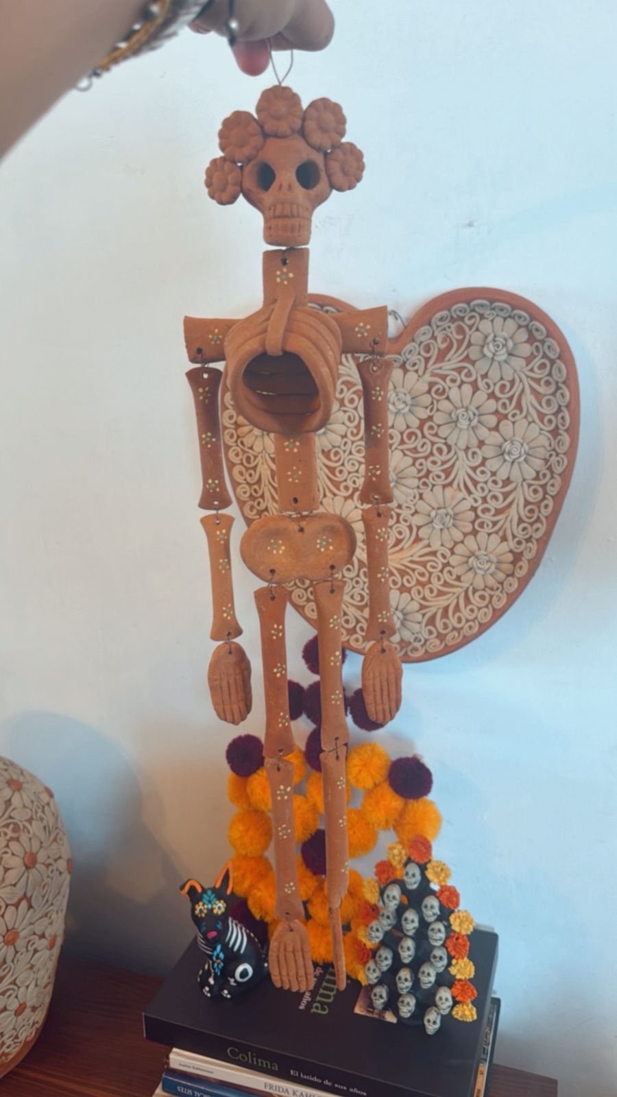 Esqueleto colgante de barro de Capula. Con una altura de 50 cms.