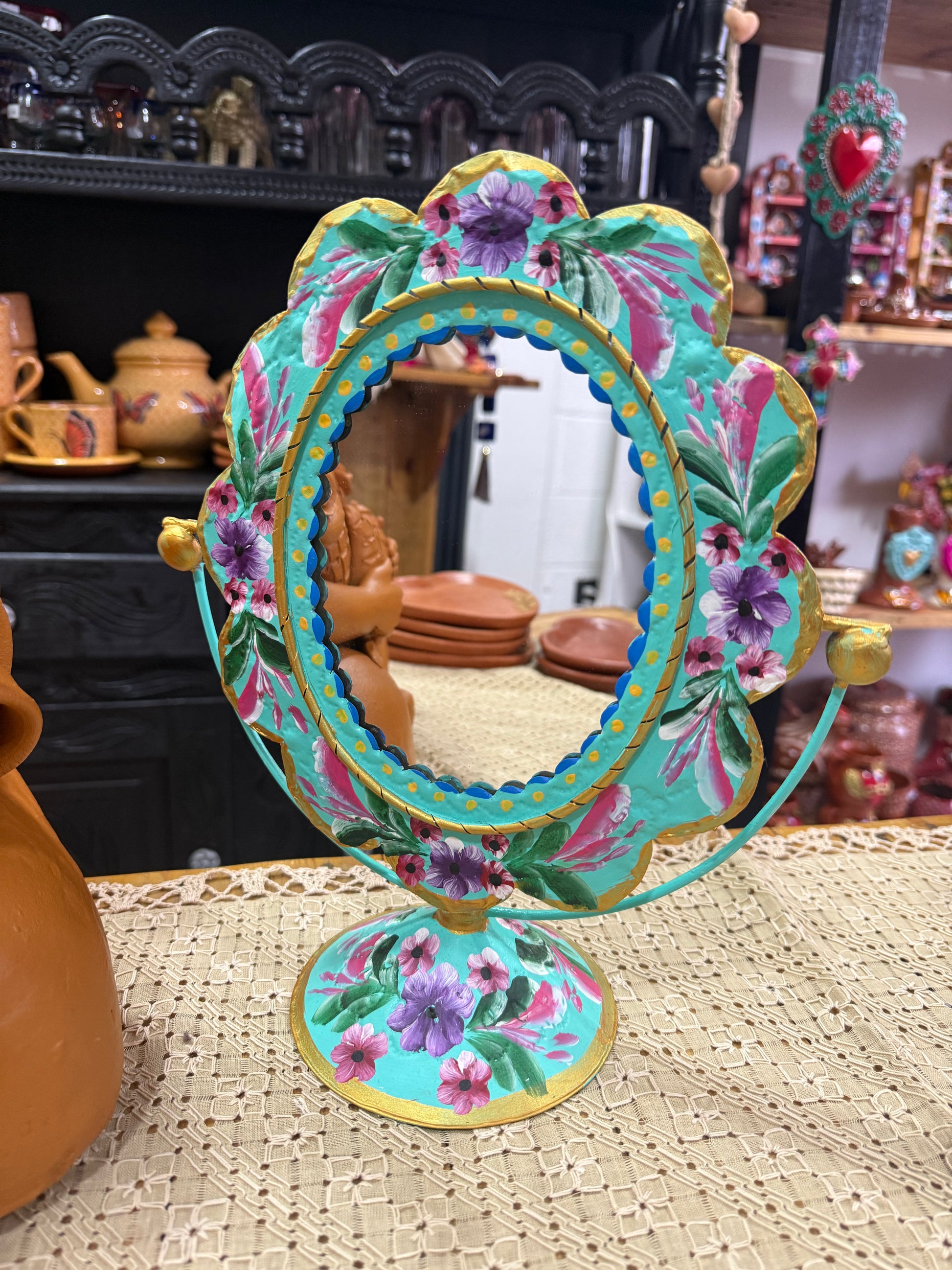 Espejo de latón elaborado por artesanos de San Miguel de Allende.