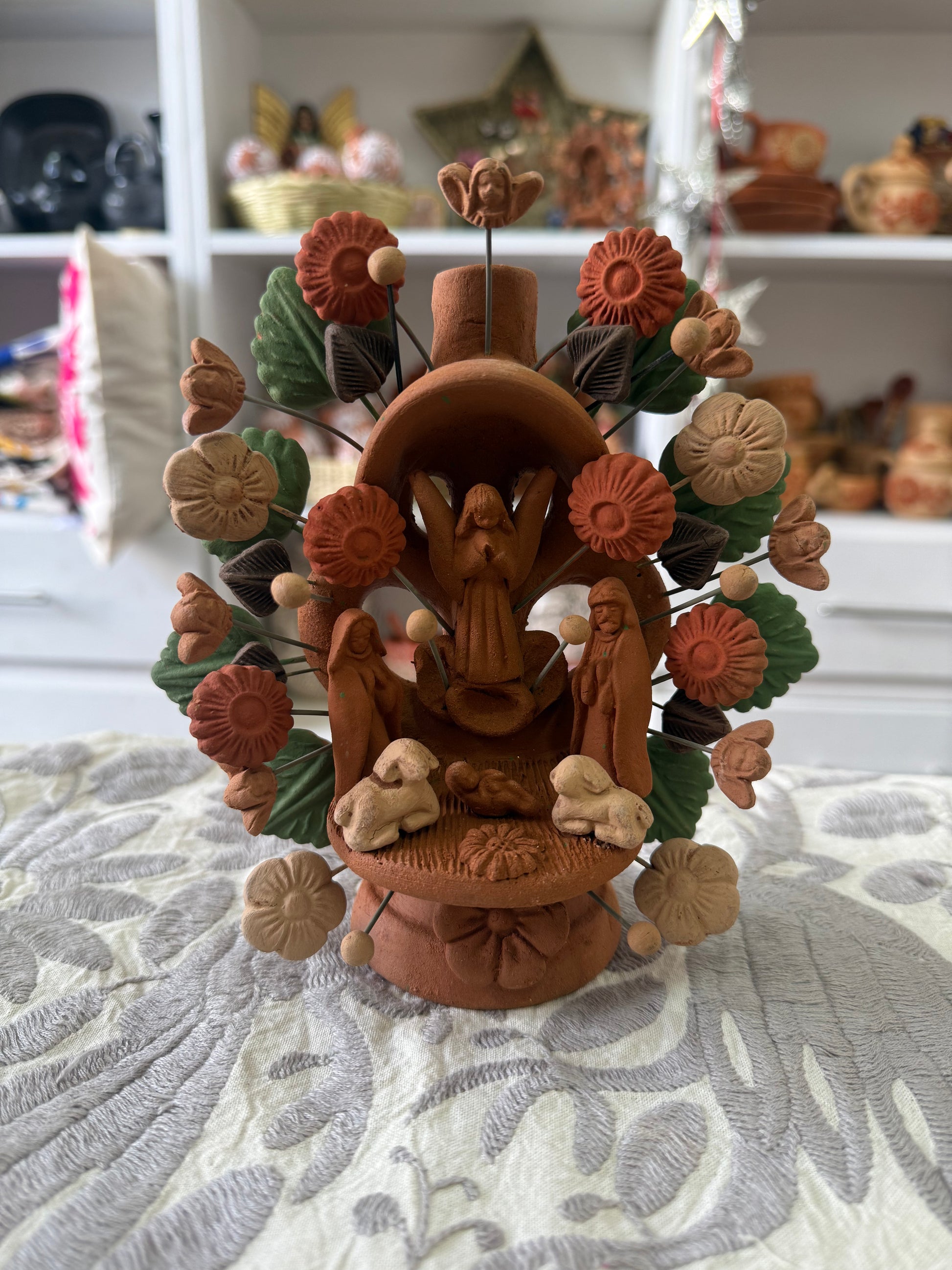 Árbol de barro para Portavela. Elaborado por artesanos de Metepec, del estado de México.