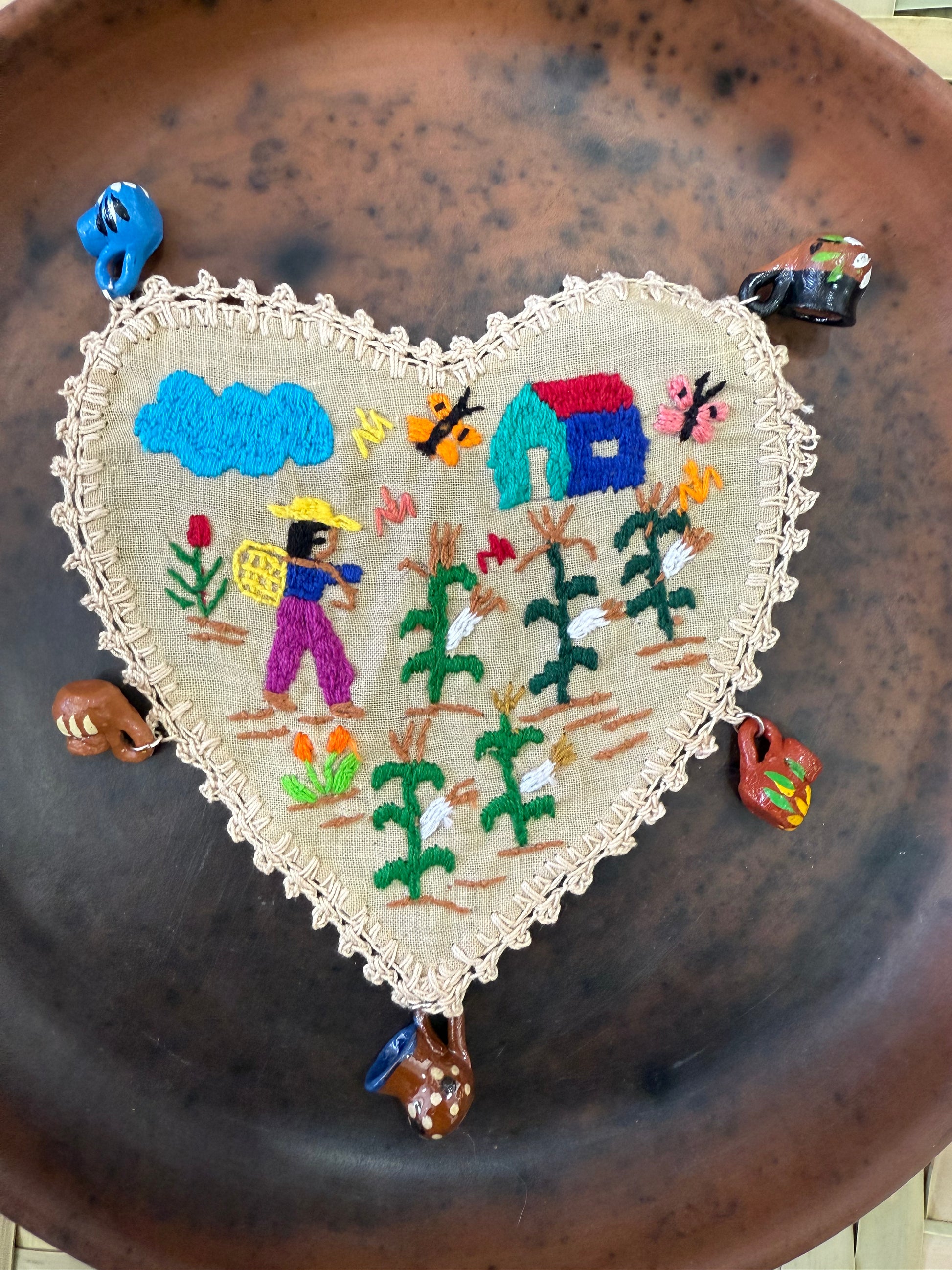 Servilletas de historias bordadas elaboradas por artesanos de Tzintzunzan. Sus medidas son de 14x14 cms.
