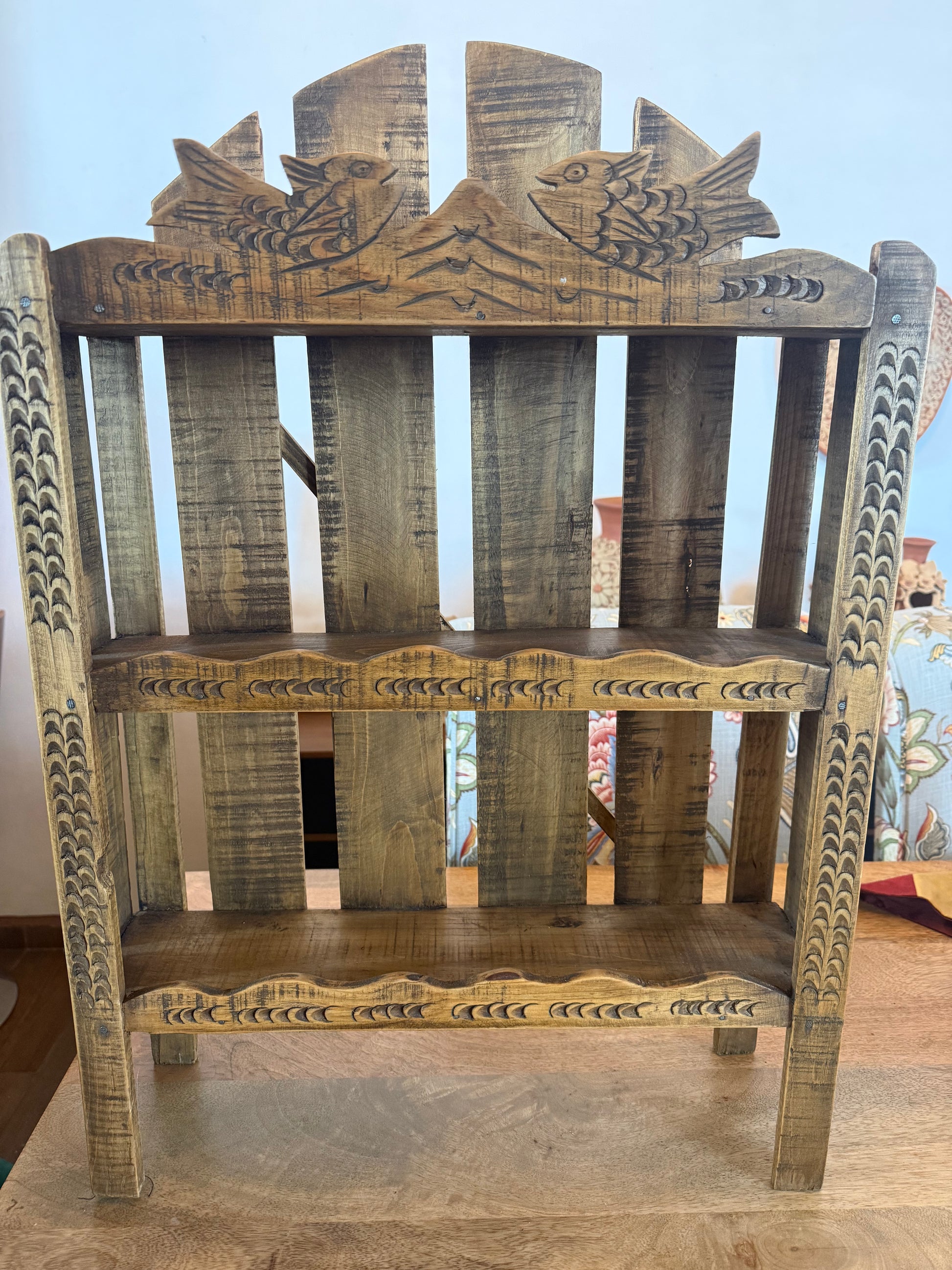 Trastero de madera hecho y pintado a mano por artesanos de Michoacán, con medidas de 75 cms de alto 50 cms de ancho y de fondo 12 cms
